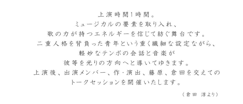 ※『言葉の奥ゆき 通(アゲイン)』~夏休みの宿題~と『Who am I ?』共に同じ会場になります。
