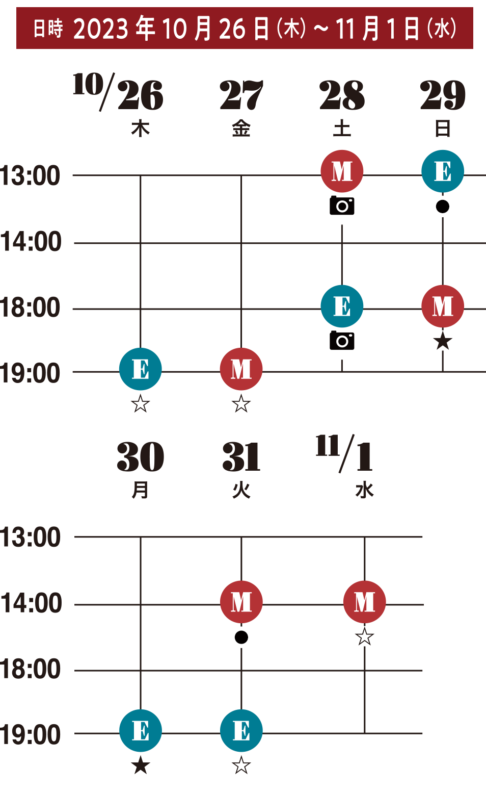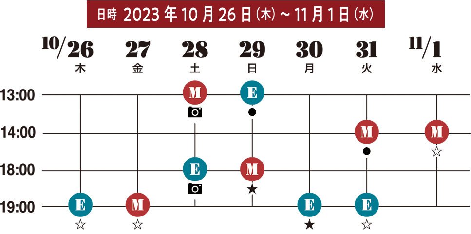 ☆=終演後「舞台挨拶」 📸=終演後「撮影会」 ★=終演後「トークショー」●=音声ガイドあり(詳細はこちら)