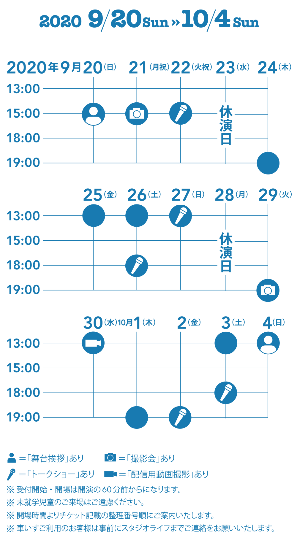 ■ビニールシールドでの飛沫感染防止対策を講じて、物販、リピートチケット、club LIFE新規ご入会受付(ご継続受付も含む)を終演後に屋外(屋根下)にて行います。時間制限は設けませんので、密にならないようご協力をお願いいたします。物販については一部の商品を除き通販サイトでも承ります。