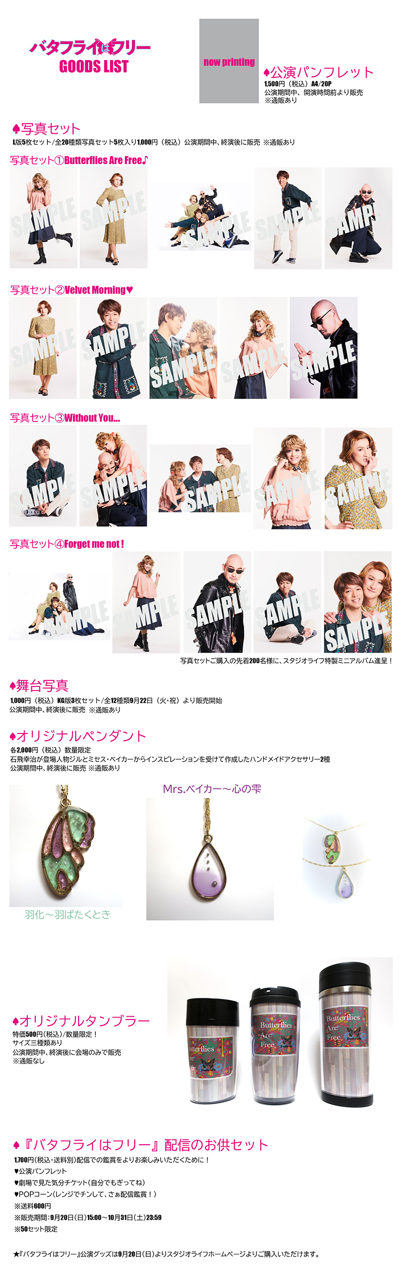 このたび『バタフライはフリー』の本編映像配信に関して、権利の都合上、予約受付を中止させていただきます。現在、本編配信に代わる企画をいち早くお知らせできるよう準備を整えております。映像配信をお楽しみにされていたお客さまには大変ご迷惑をおかけいたしますが、なにとぞご理解を賜りますようお願いいたします。