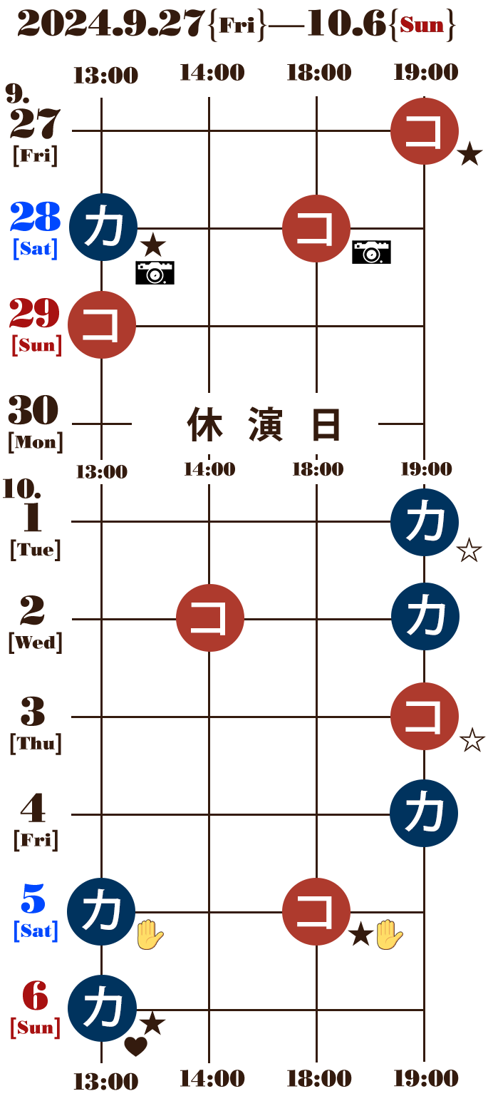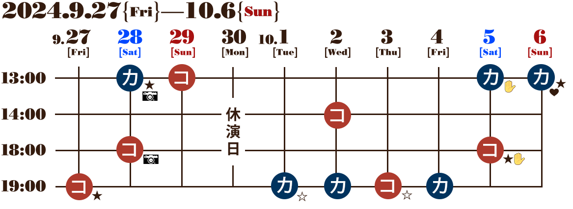 ✋=終演後「出演者全員でお見送りday」 ♥=終演後「特別イベント」